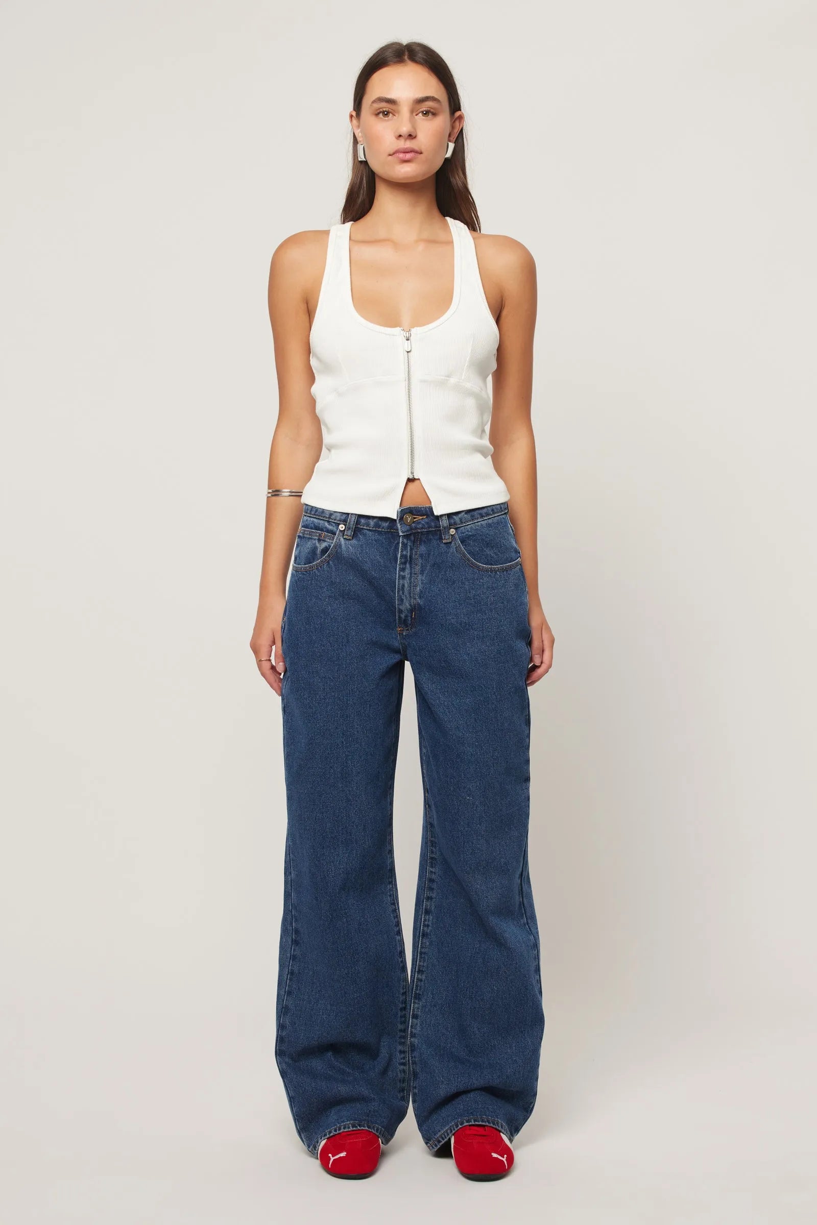 - Designed with a mid-rise waist that sits just below your belly button, these mid-blue jeans are your go-to for a relaxed, baggy style