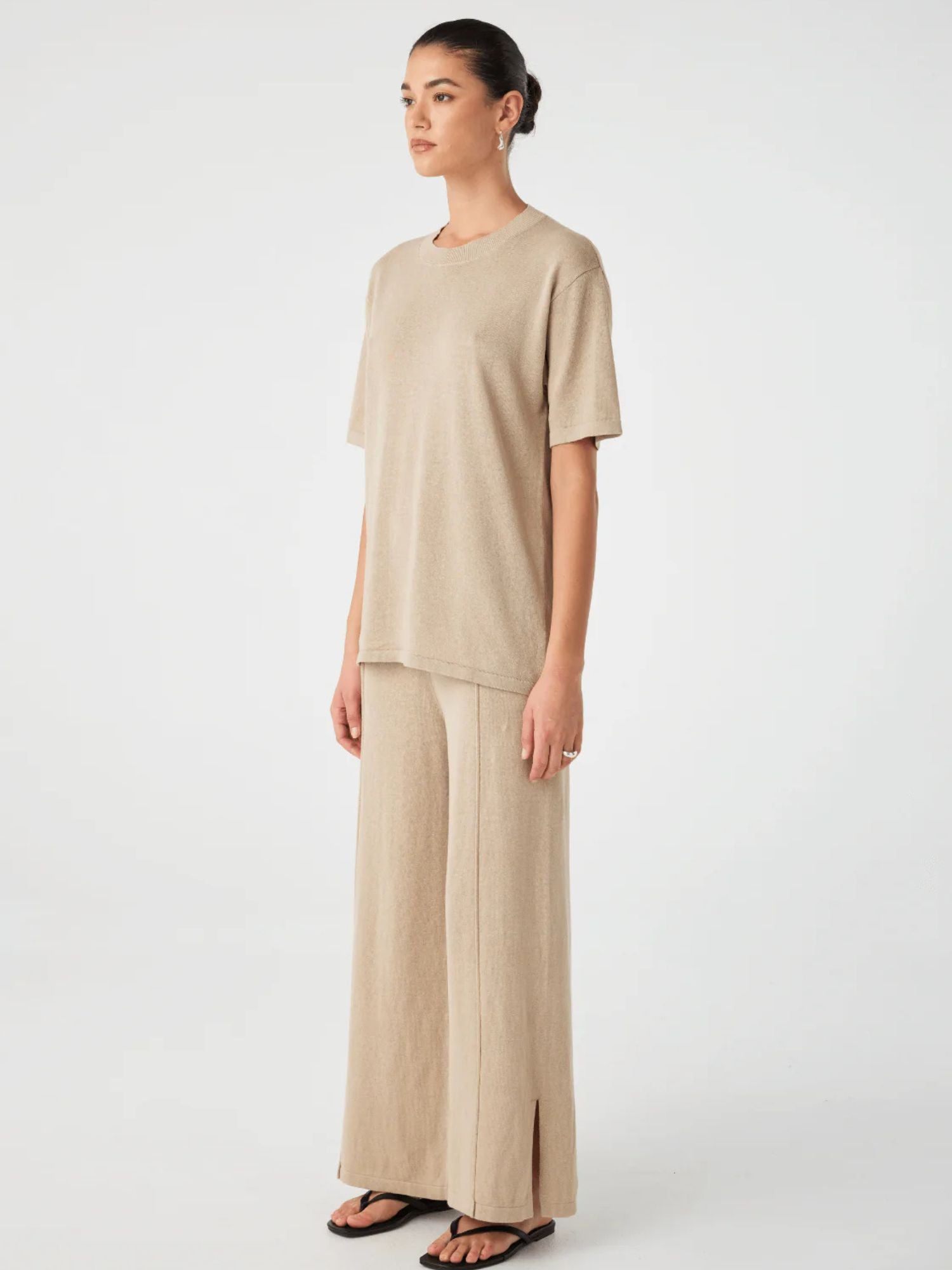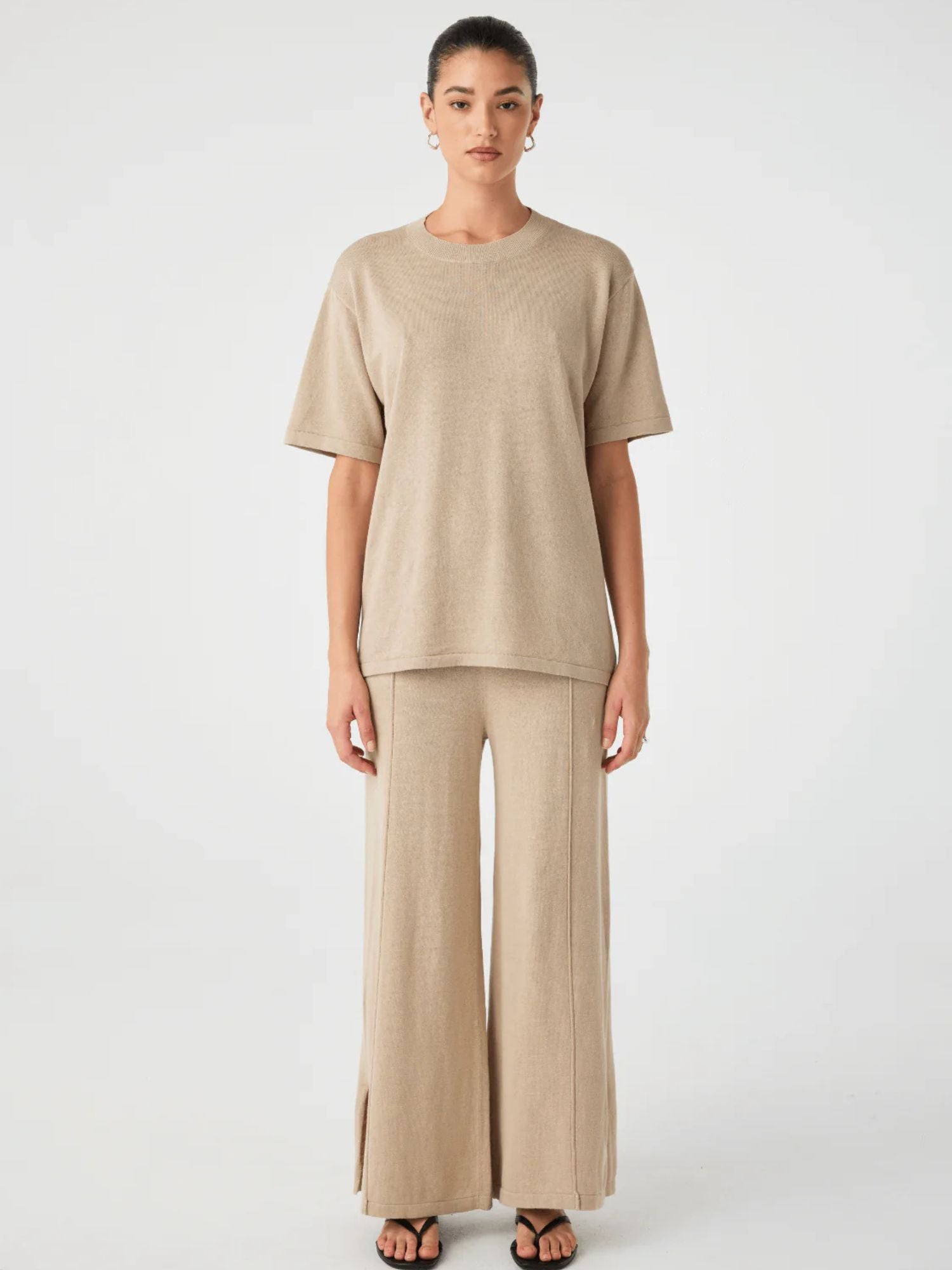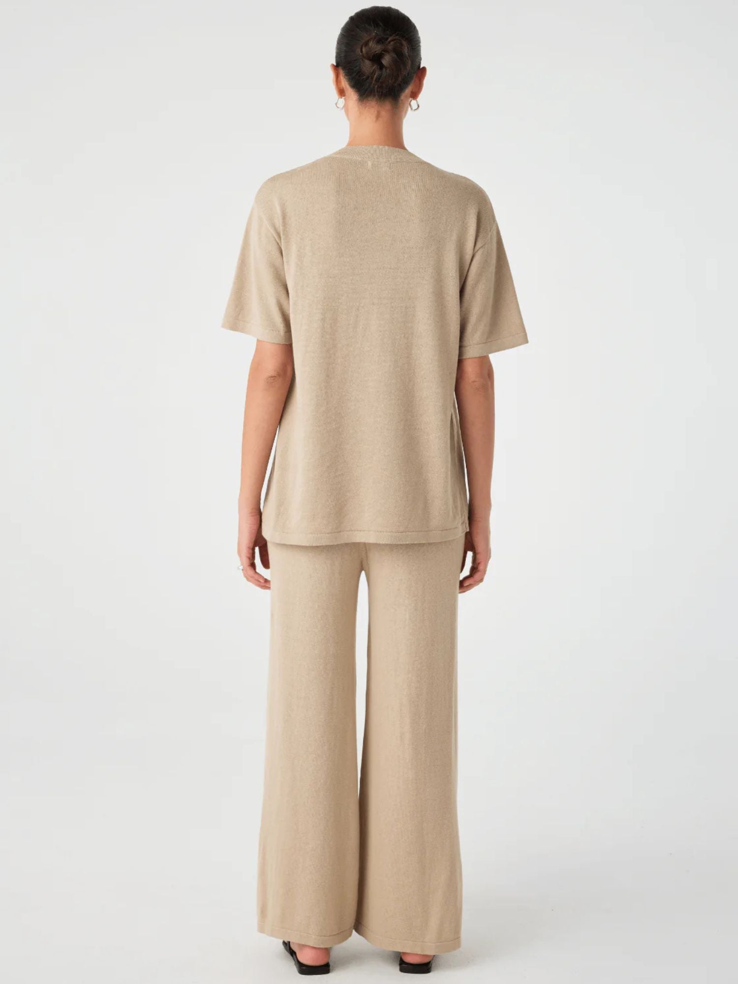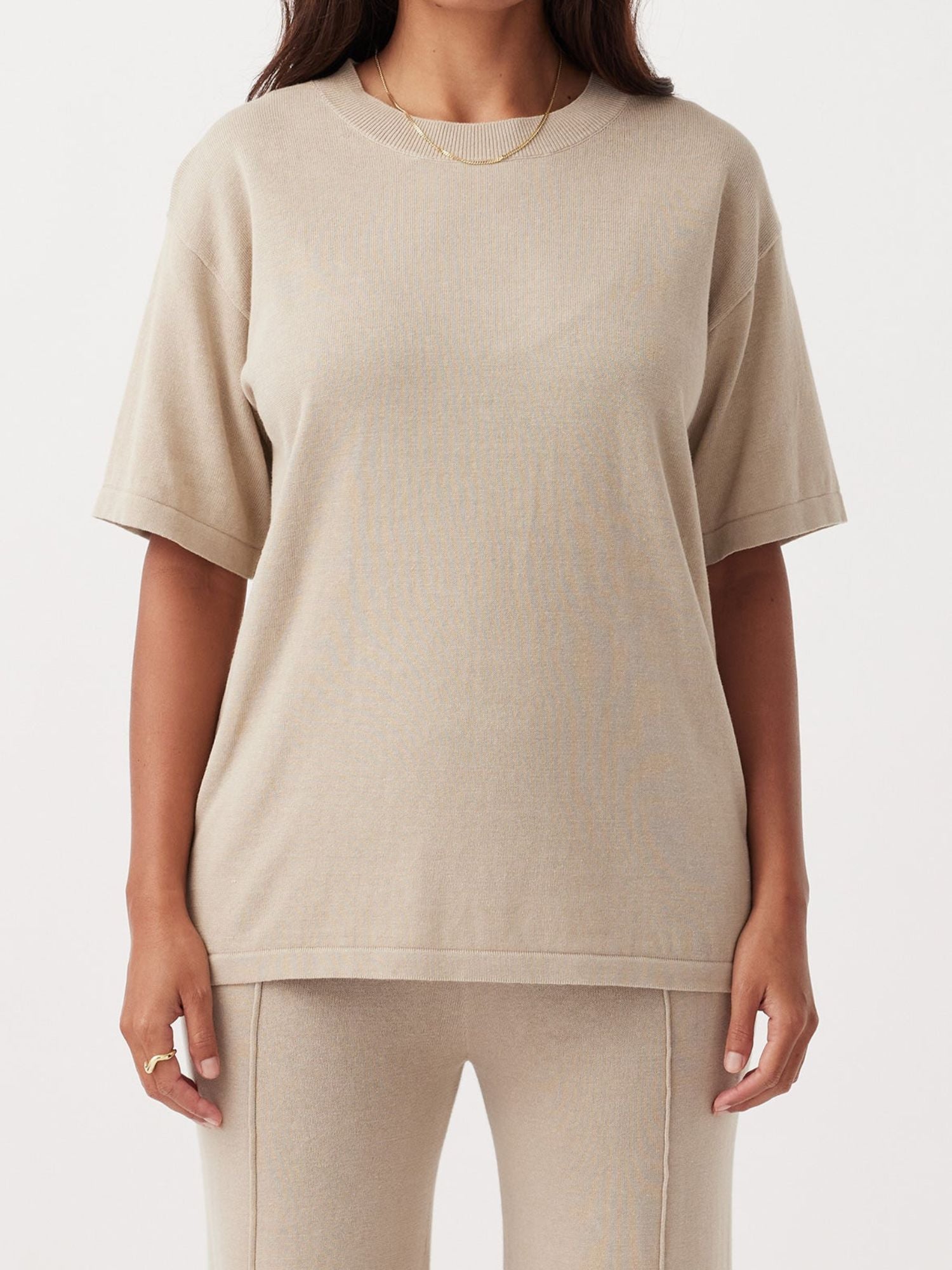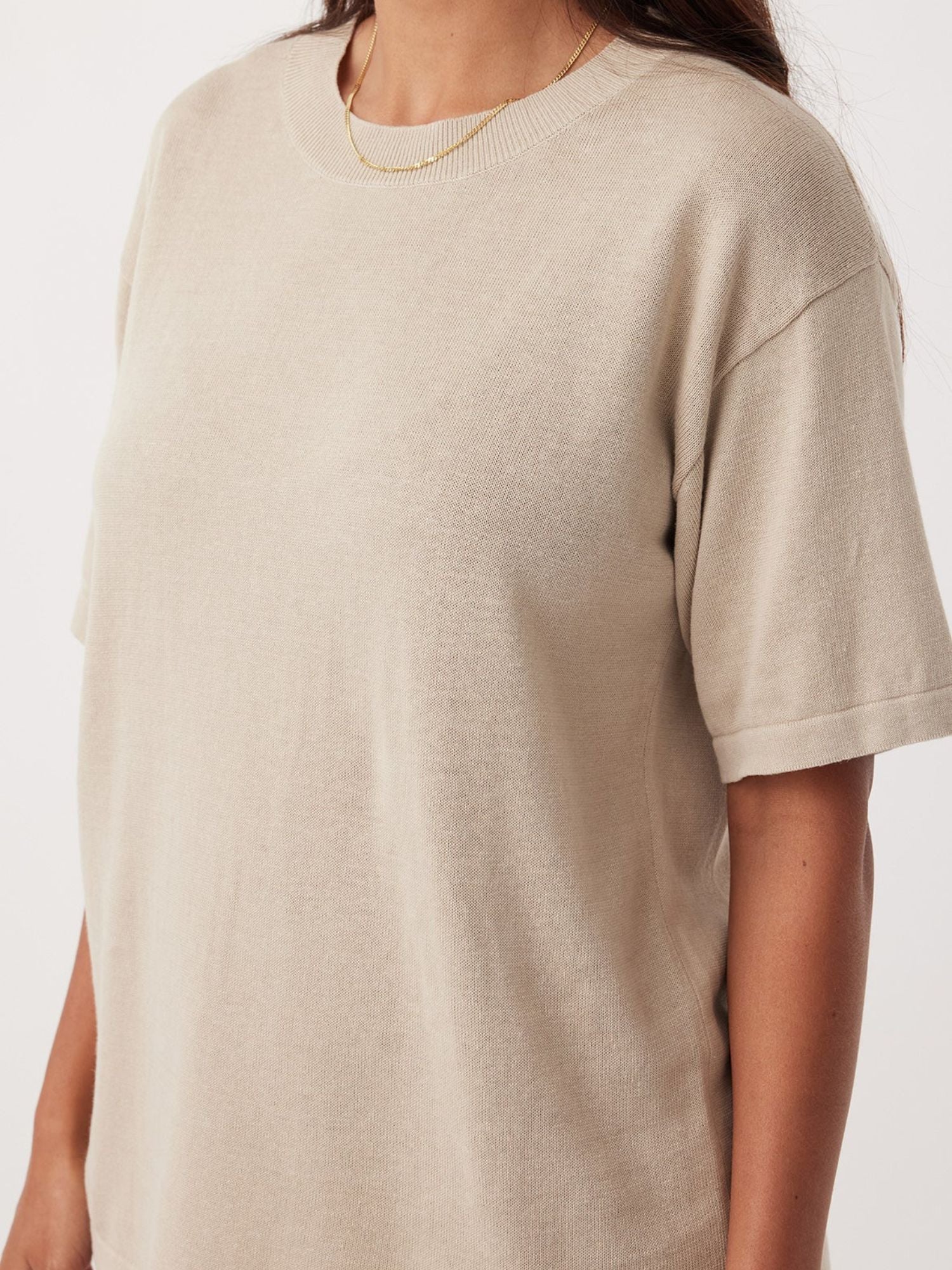 The Ada T-Shirt in Taupe features an oversized, classic tee shape with a crew neck. Made from a blend of 55% linen and 45% organic cotton, it offers a soft hand feel and relaxed fit. Ethically produced for comfort and sustainability, this t-shirt is perfect for casual, everyday wear.