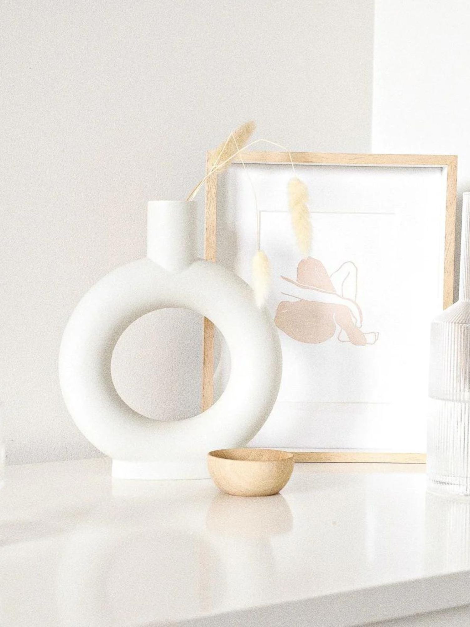 This stunning handmade circle halo vase adds a touch of luxe simplicity to any room. Style with dried florals or place it as a display by itself.