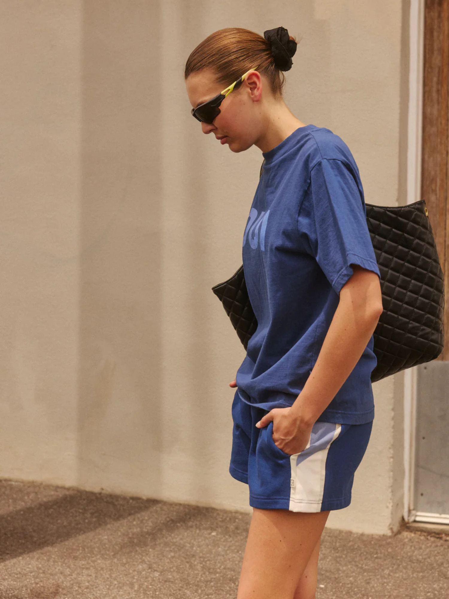 Introducing our Parisienne Tee in Midnight Blue. Featuring a round neckline and exclusively designed AJ graphic at the front. Designed in our new classic shape, this tee is perfect for a relaxed yet chic look. Pair back effortlessly with our Parisienne Track Short.