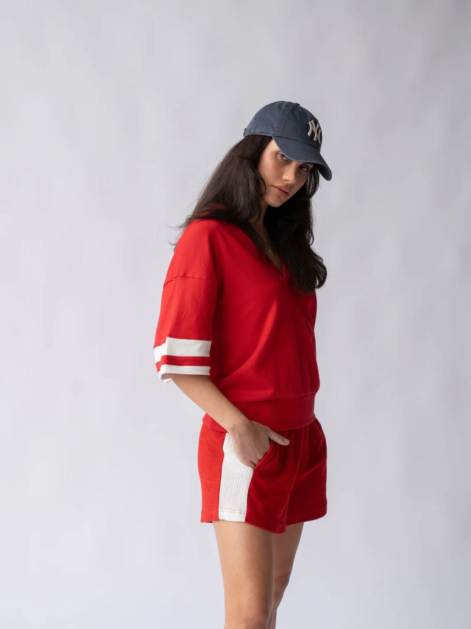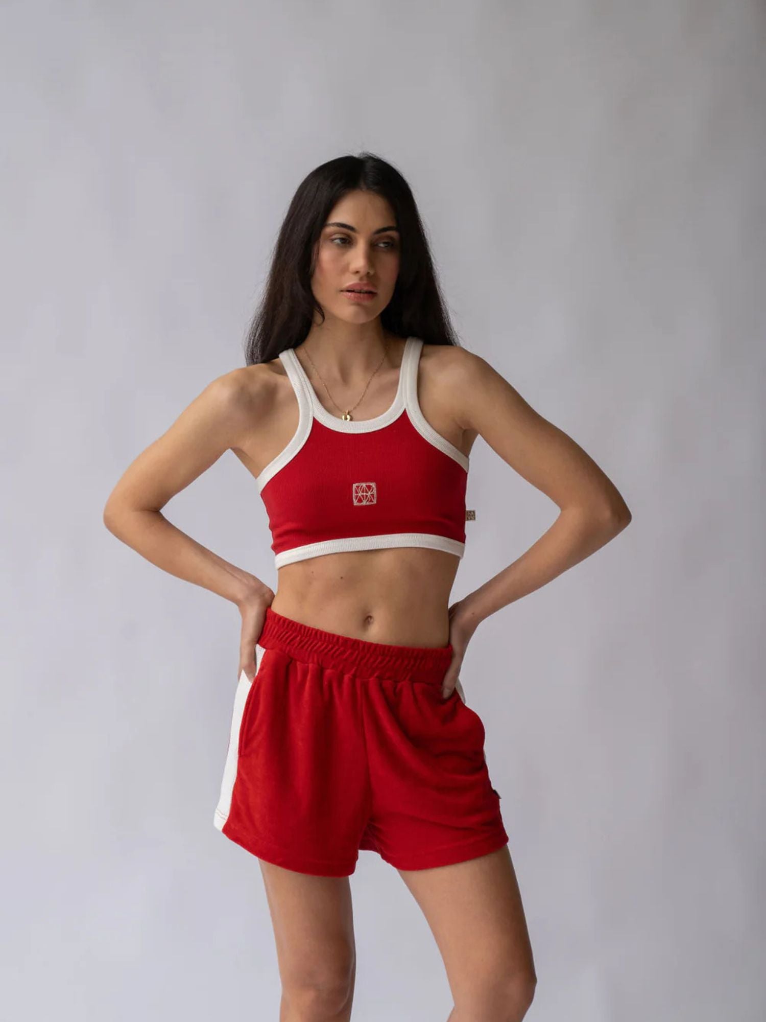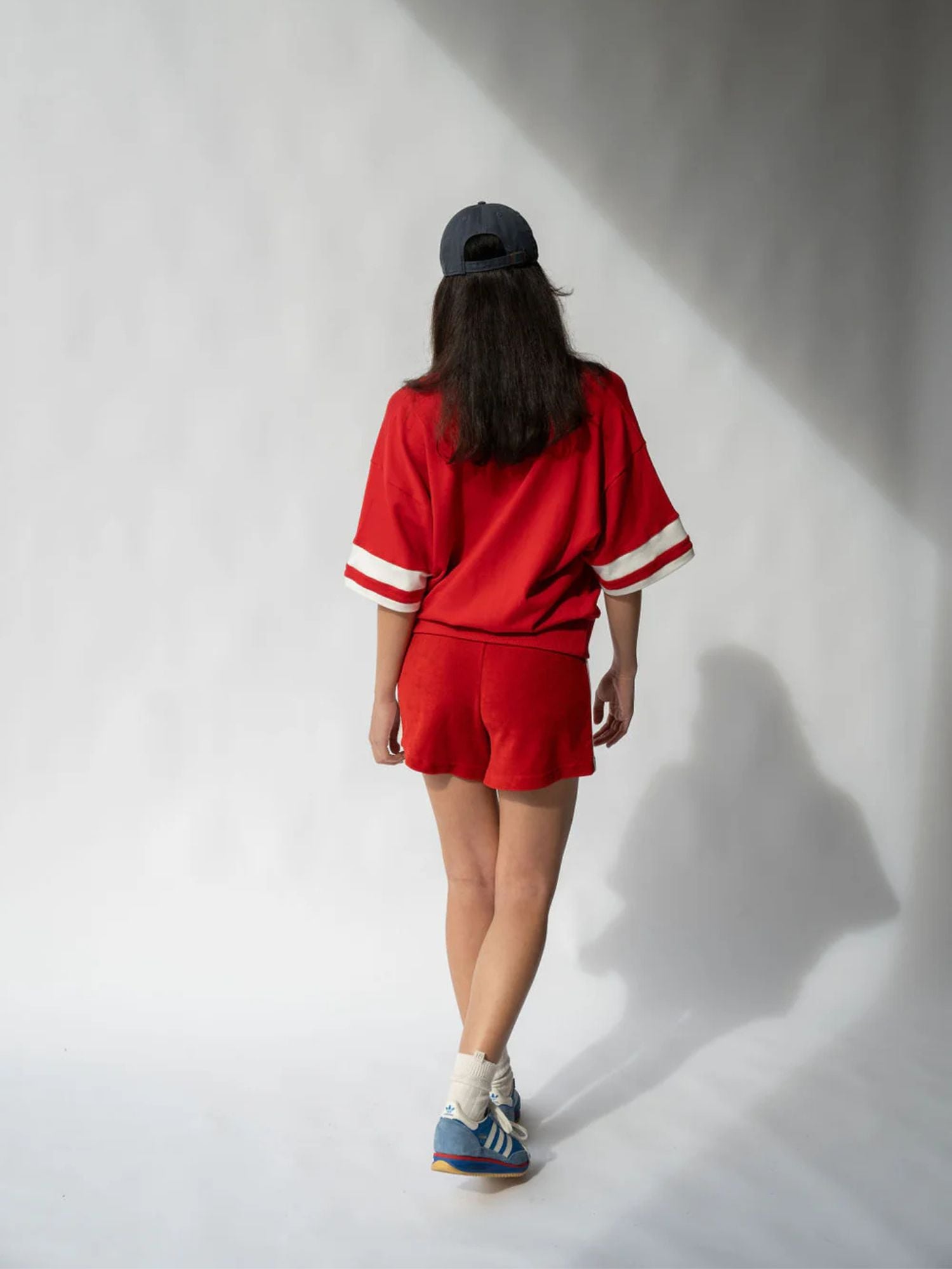 Effortlessly cool and sporty, the Sportif Short in Cherry is your new favourite staple. Made from premium terry towelling with bold contrast waffle trims, these shorts are both stylish and comfortable. Featuring an elasticised waistband and side pockets, these are a must-have piece. Pair with our French Cherry Shirt in Cherry for an effortless sport-inspired look.