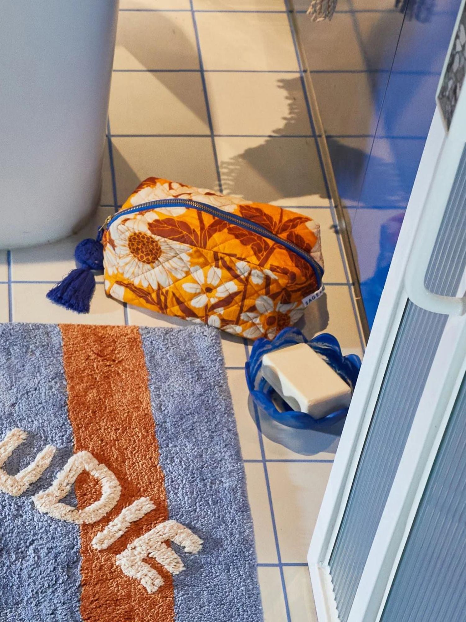 “Bring the beautiful feel of a wildflower meadow to your home and travel essentials with the Bernanda beauty bag. The artisanal charm of this home and travel essential is enhanced by quilted topstitching, a contrasting zip and a playful pom pom tassel.” – Phoebe’s Style Notes