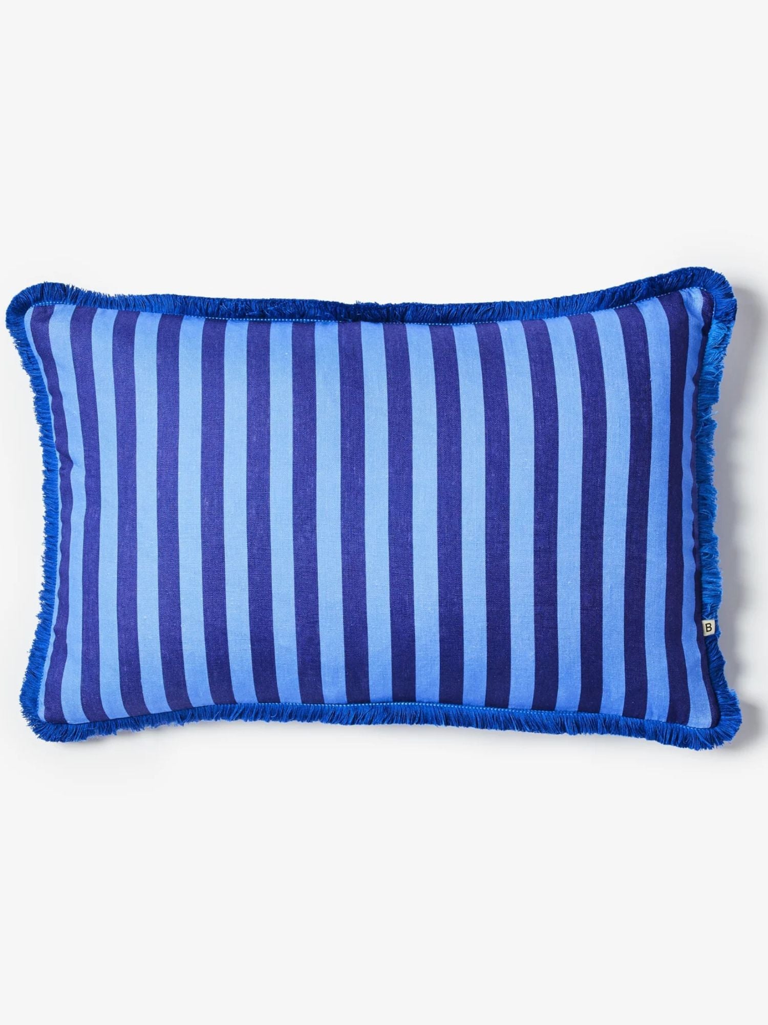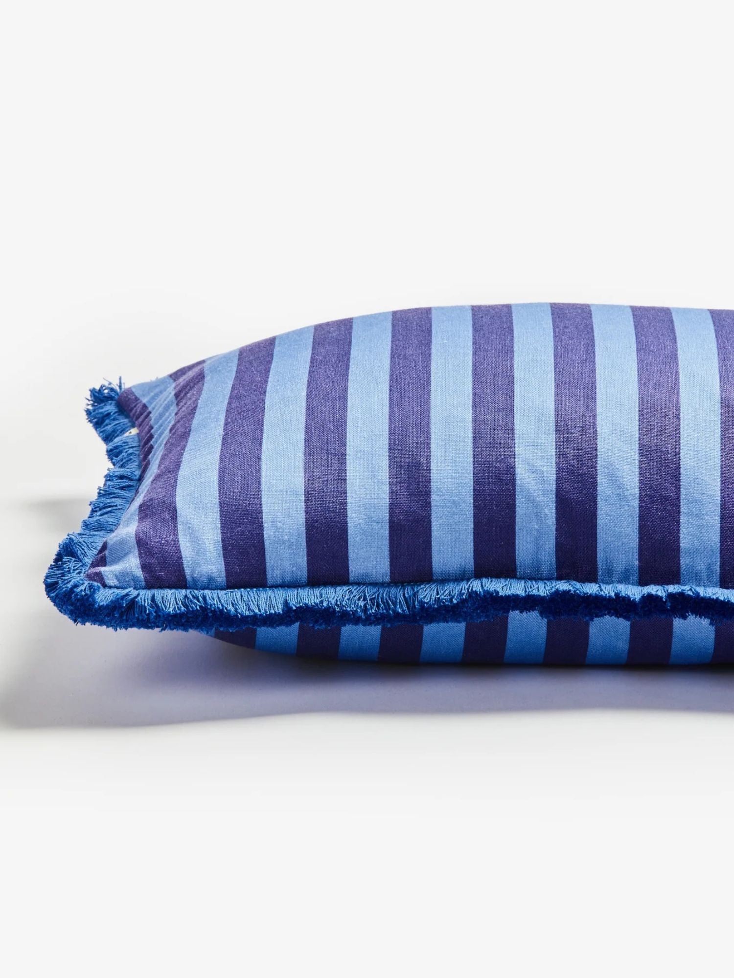 Inspired by shiny coloured wrappers found in bright boxes of decadent confectionery, our Thin Stripe Blue Cushion brings joy and colour to your living space. Pair this striped blue cushion with hand painted florals and wide stripes in boucle or linen finishes.