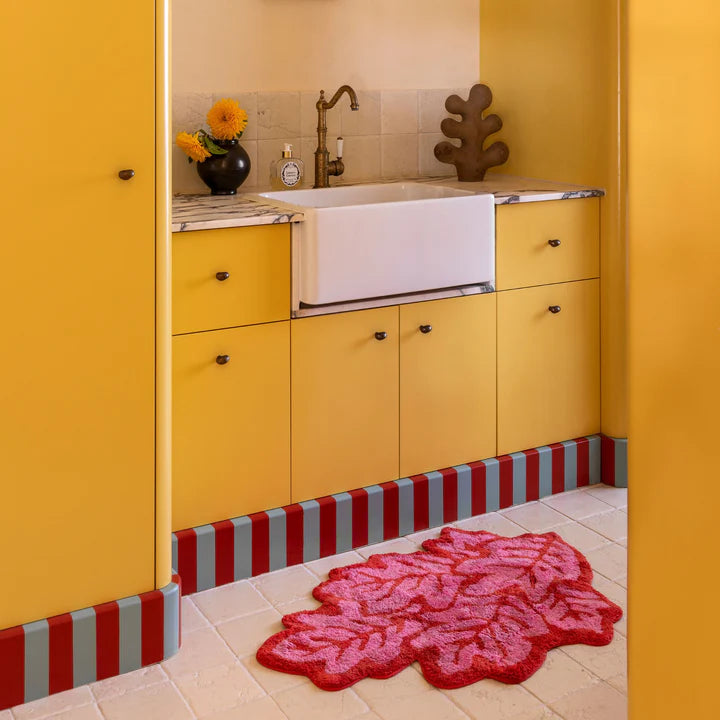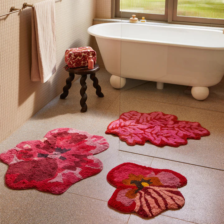 Add some colour to your bathroom floor with our Leaf Pink Bath Mat. In a vibrant, variegated design, this pink leaf bath mat can be styled on its own in smaller spaces or paired with our Candy Pink Long Bath Mat or Flower Pink Bath Mat where space allows. Made from colourful, tufted cotton our bath mats are soft and cosy underfoot, ensuring warm toes all year round.95cm x 60cm