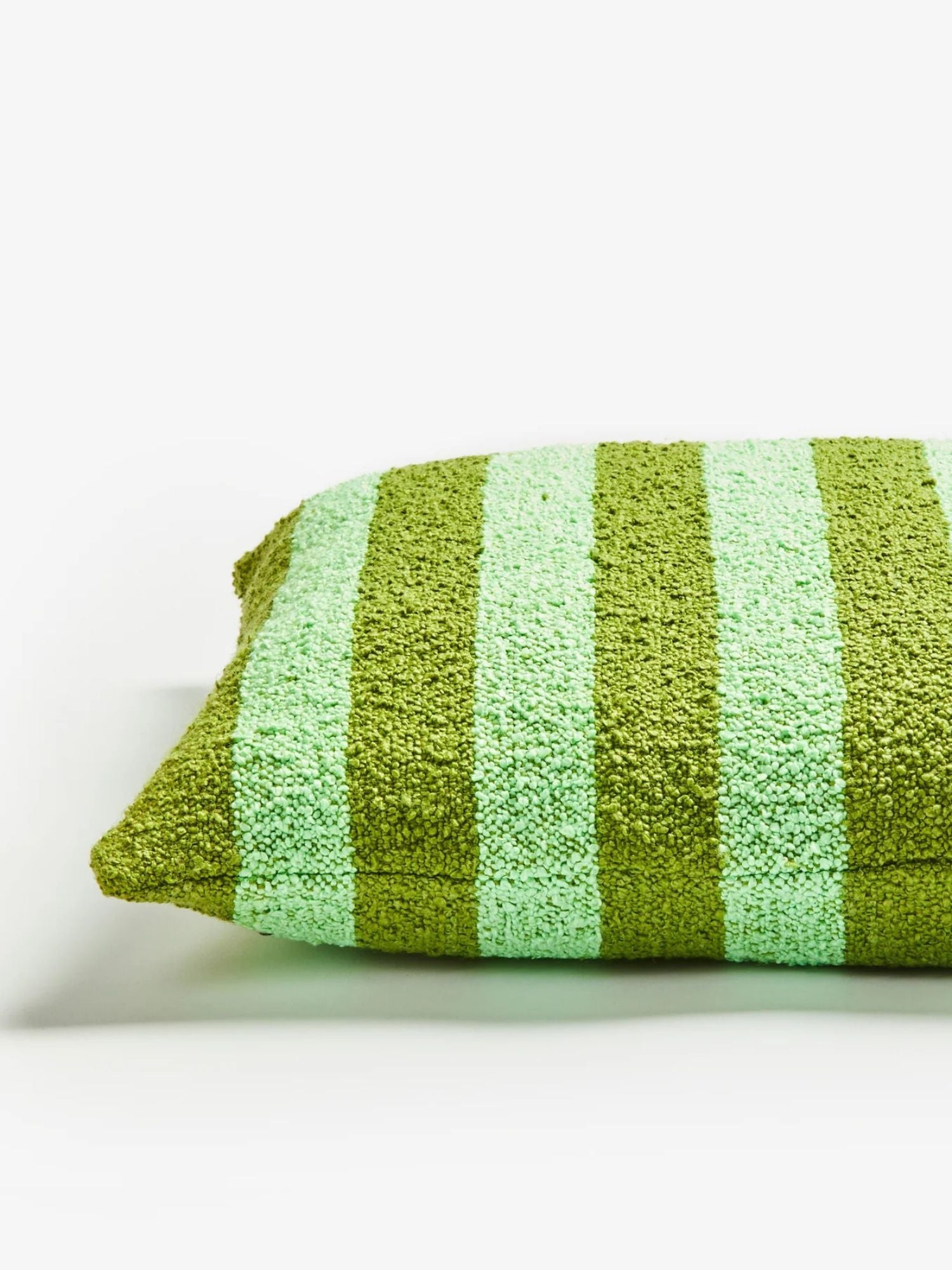 Make a statement with bold stripes and vibrant colours in a soft, cosy finish. Hand loomed from textured boucle, our Boucle Stripe Olive Cushion brings comfort and style to your living space. Style this olive green striped cushion with nature inspired patterns and thin stripes.