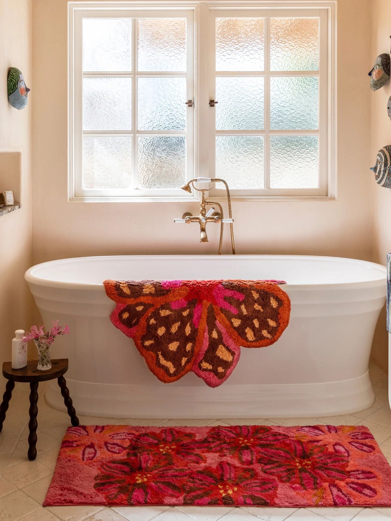 Bonnie & Neil - Pink Floral Flower Bath Mat