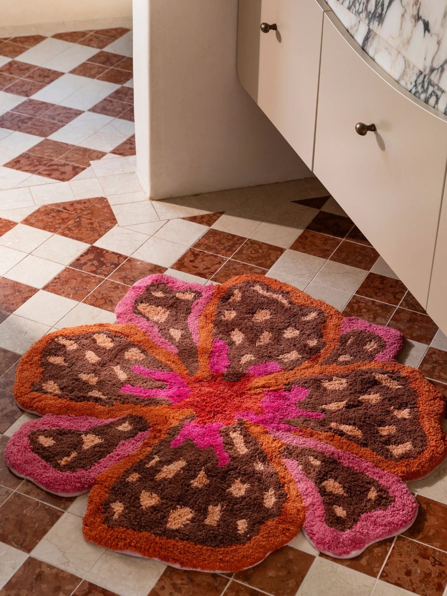 Inspired by oversized florals found in seventies interior design, our Flower Pink Bath Mat brings joy to your bathroom floor. Made from colourful tufted cotton in a giant flower shape, this pink floral bath mat sits perfectly alongside your bath, shower or vanity. For larger bathrooms, pair this style with our Candy Pink Long Bath Mat for plush softness underfoot.
