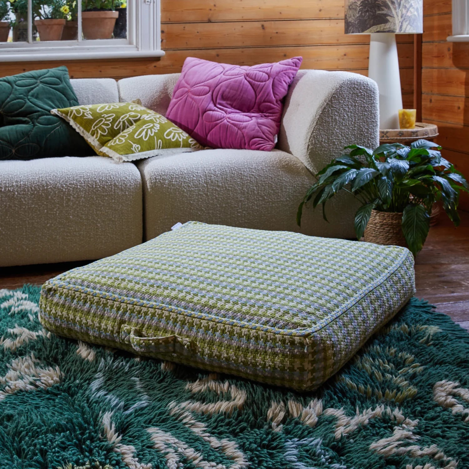 Keep it casual, cosy and comfortable with our versatile floor cushions, woven in a richly-coloured houndstooth pattern to bring a touch of warmth and life to your interior.