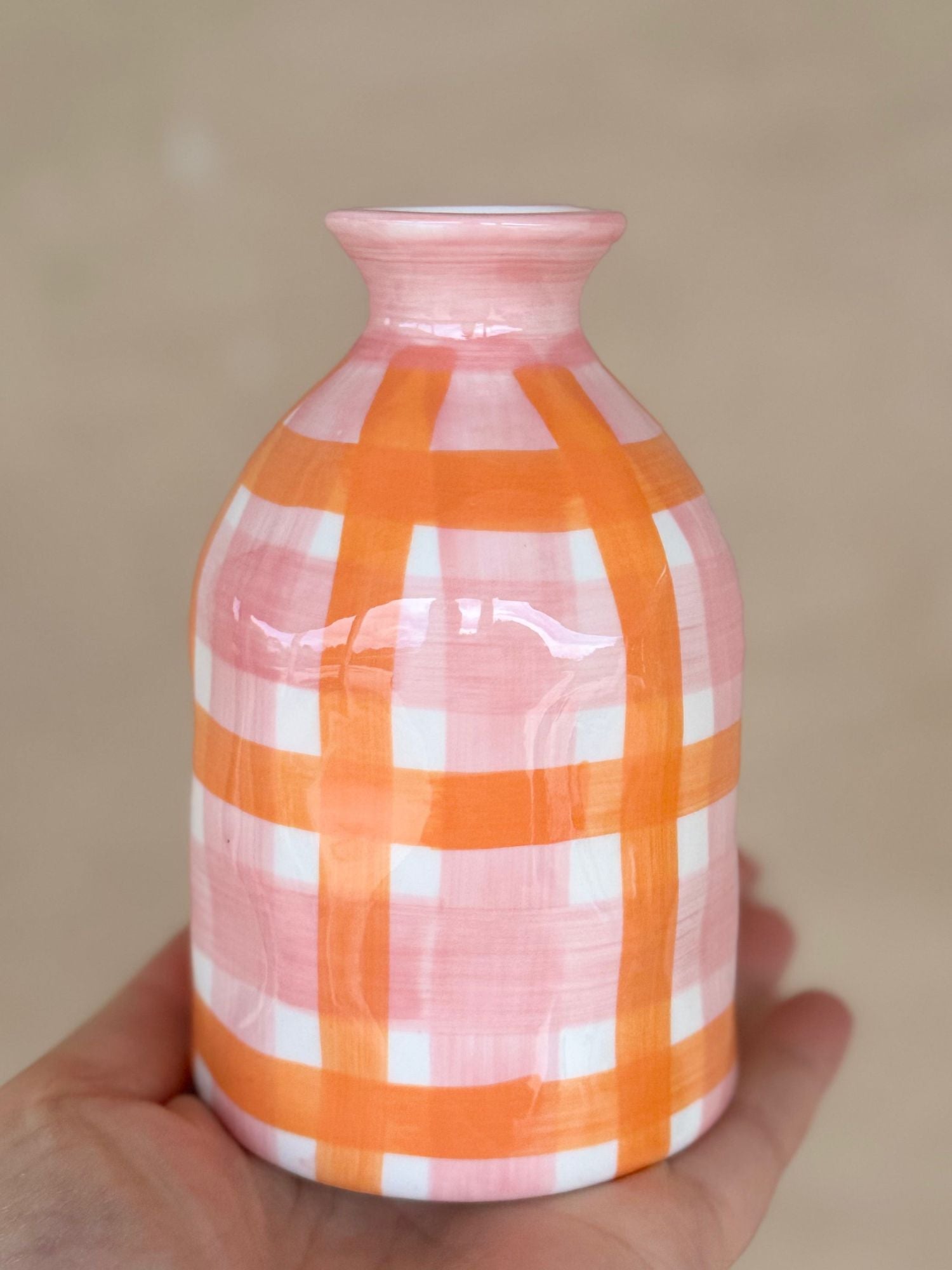 Bud Vase | Pink & Orange Gingham