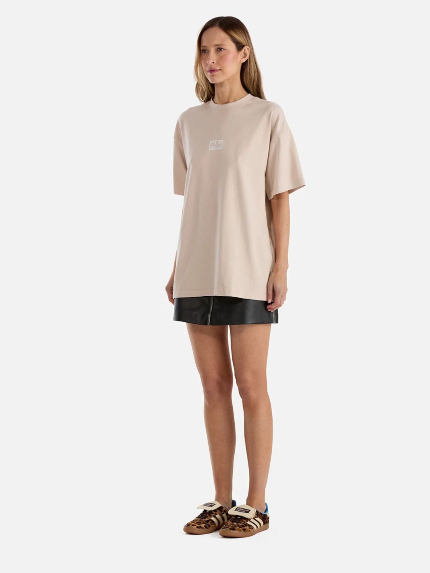 The Eva Tee in Alabaster is crafted from thick 100% cotton jersey. It has an oversized fit with a vintage- inspired print on both the front and back. Additionally, there is a white embroidered Ena Pelly logo at the back of the neck.