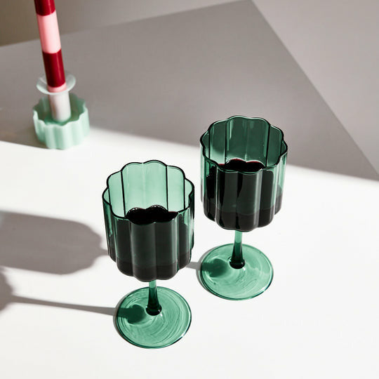 Our Wave Wine Glasses come in sets of 2 and are made from high quality borosilicate glass. Each glass holds up to 400ml.