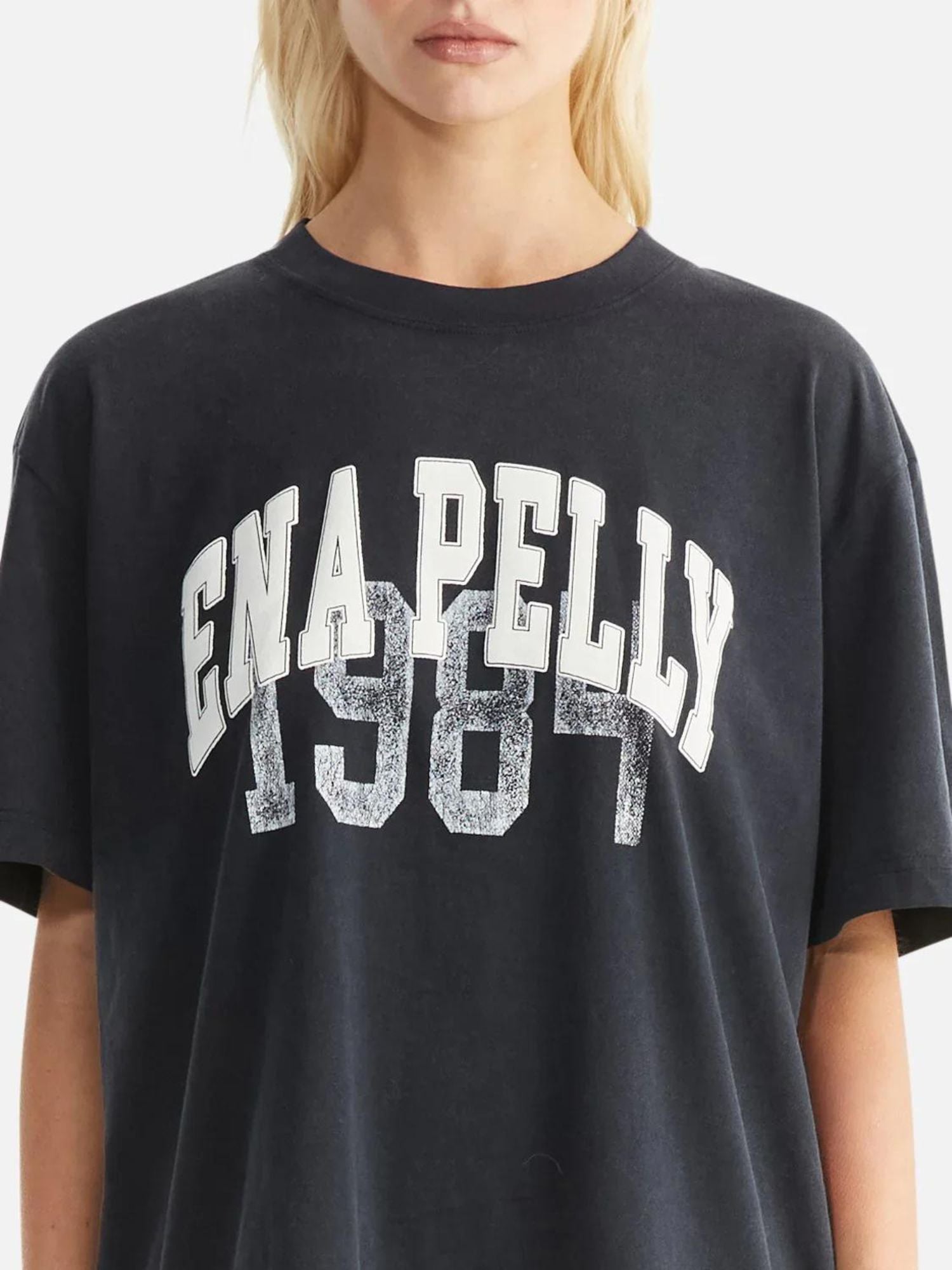 The Jessie Oversized Tee - Academy, has been crafted from a recycled cotton blend in an oversized silhouette with a ribbed neckline. The tee features a collegiate-inspired branded print across the chest.