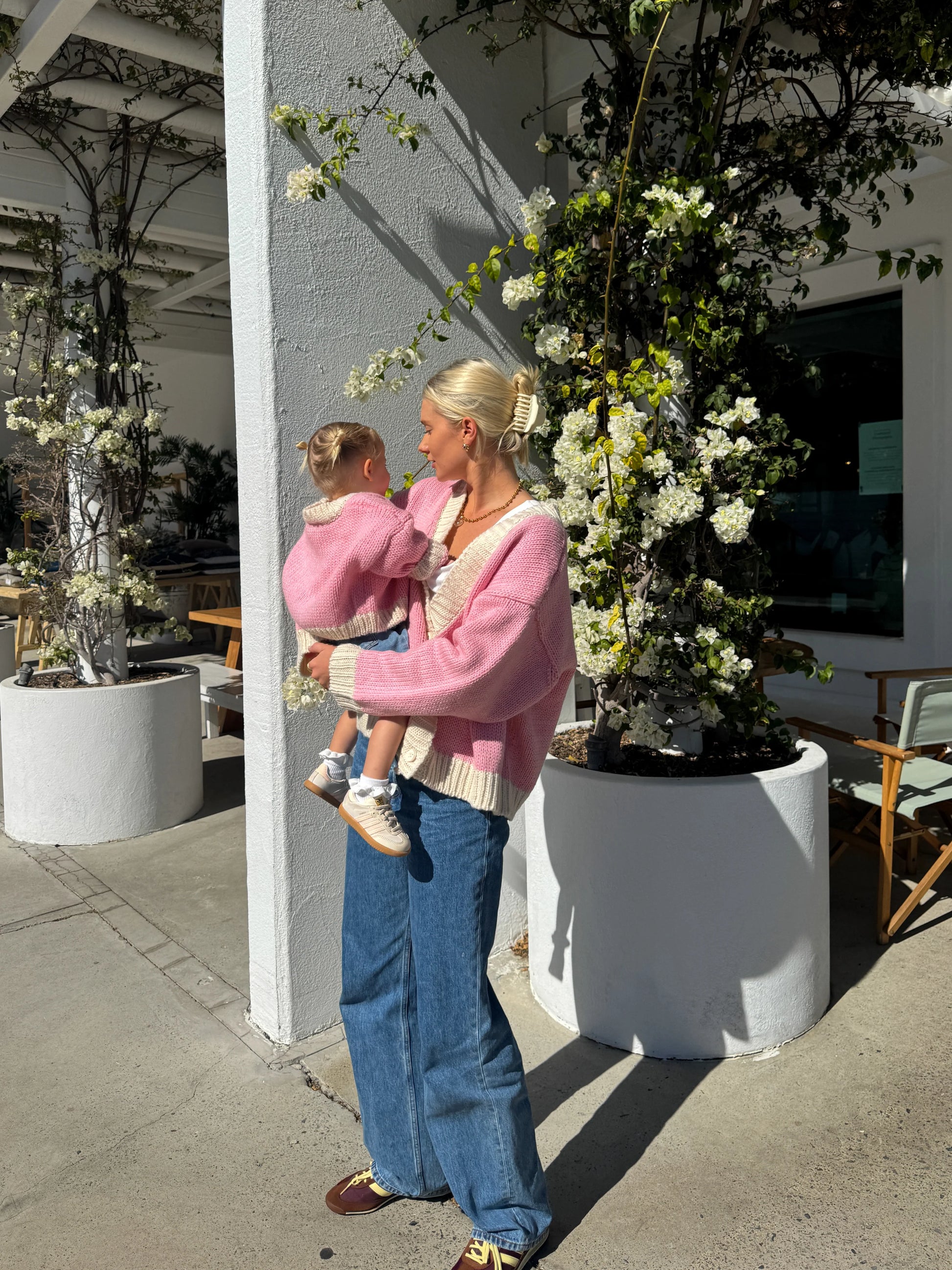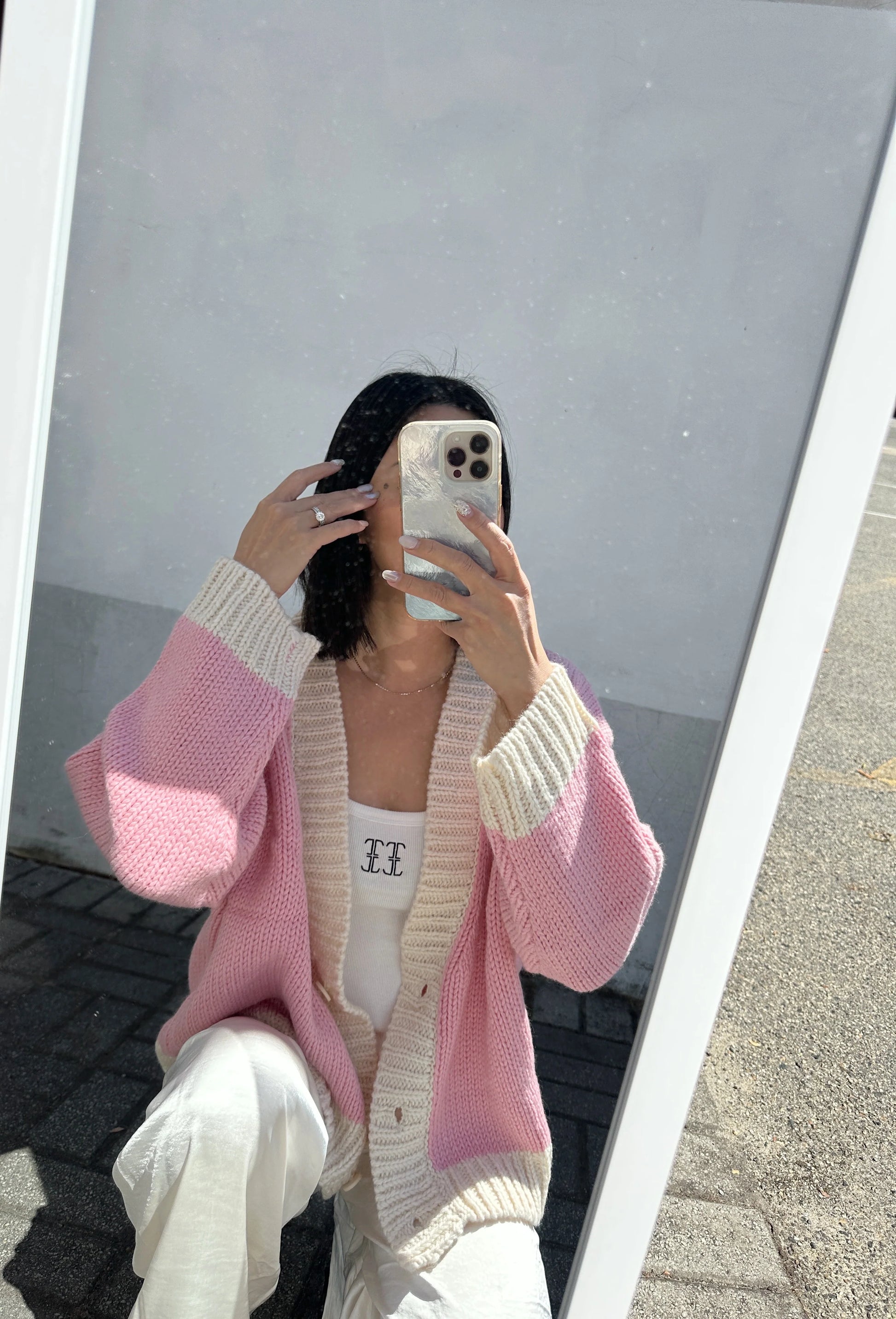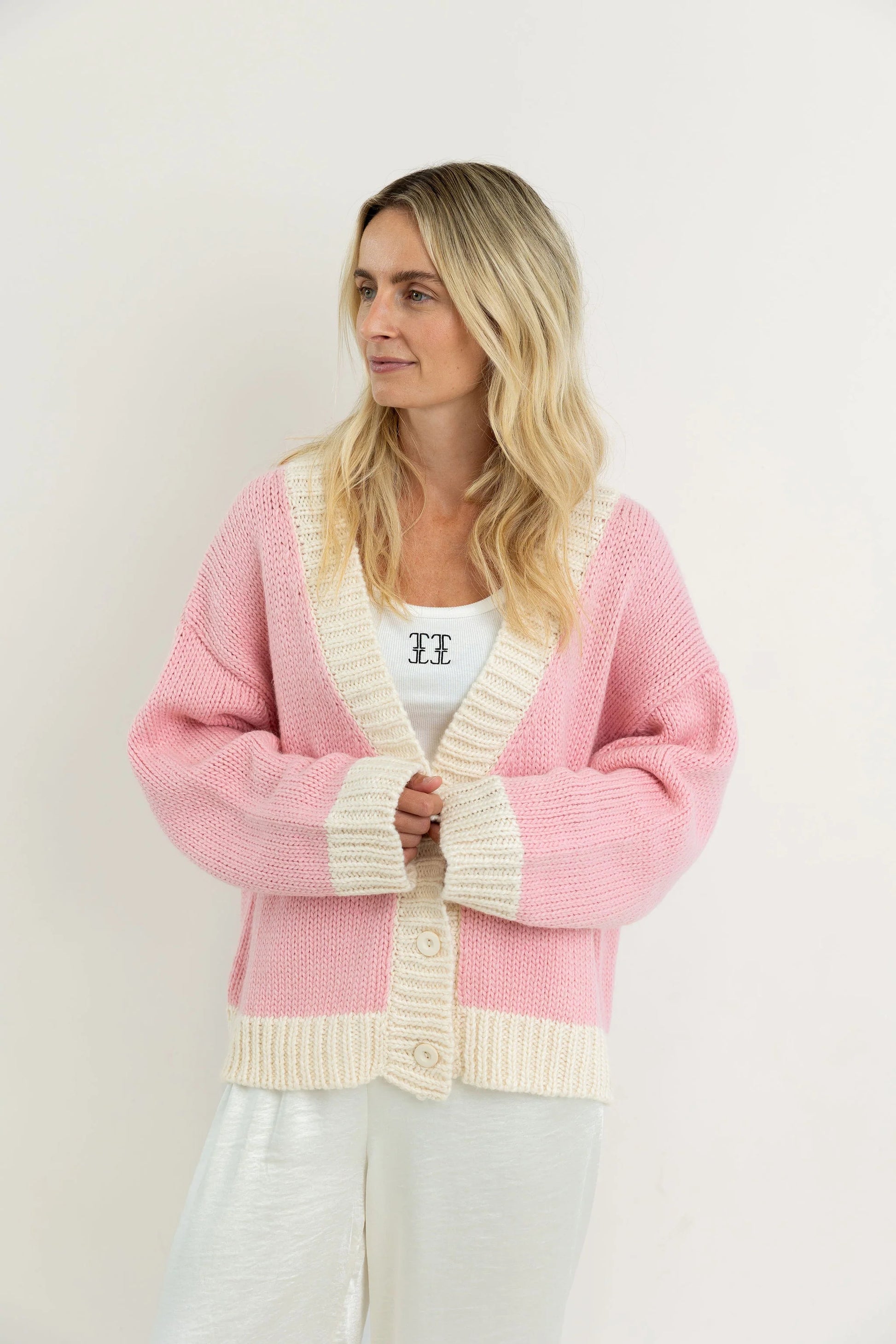 Maeve Contrast Knit Cardigan | Pink/Cream