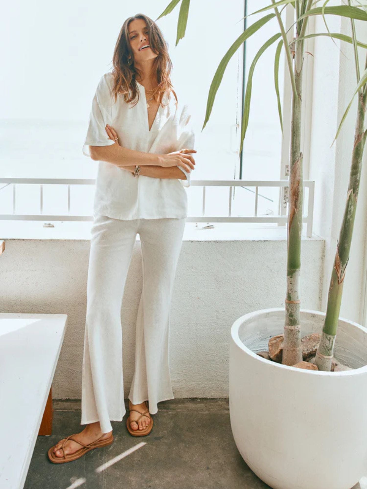 Introducing our new Milano Pant. An elevated style crafted in 100% Linen featuring a soft elasticated waistline with a flared hemline.