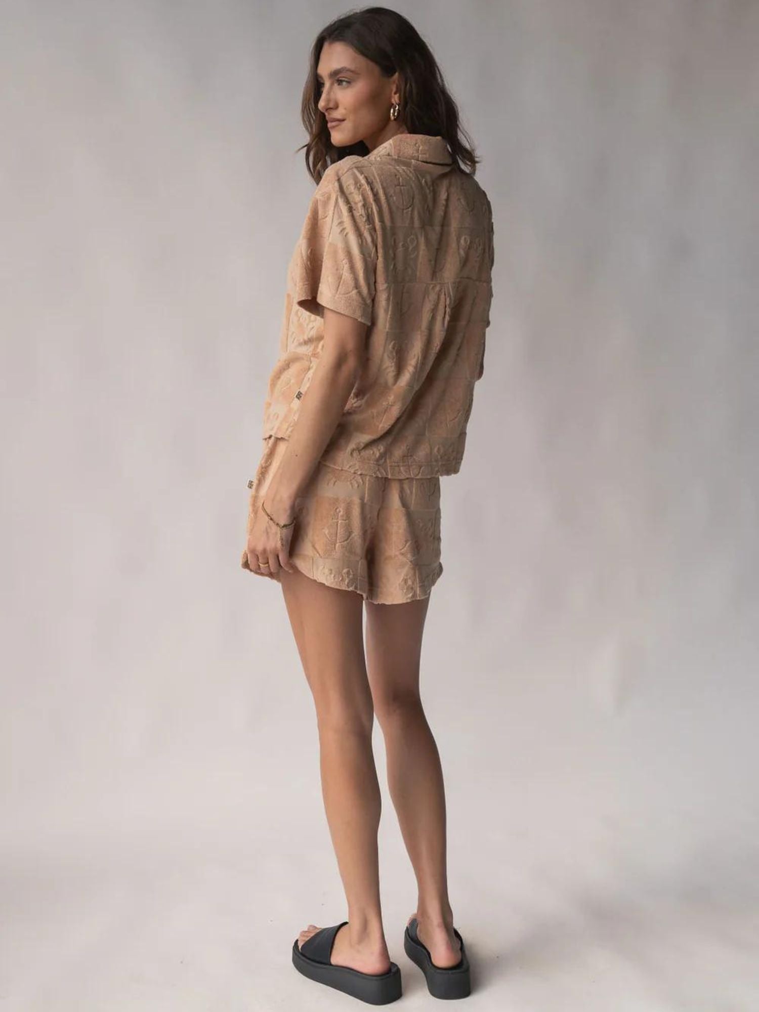 Introducing the Seaside Terry Shirt Set in Macadamia, expertly crafted in our exclusively-designed jacquard fabric, inspired by endless summer days at the beach.