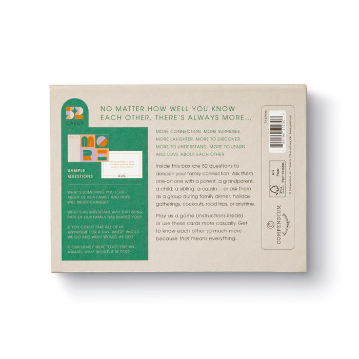 Inside this box are 52 conversation starters to help you foster communication and deepen your connection with your family.
