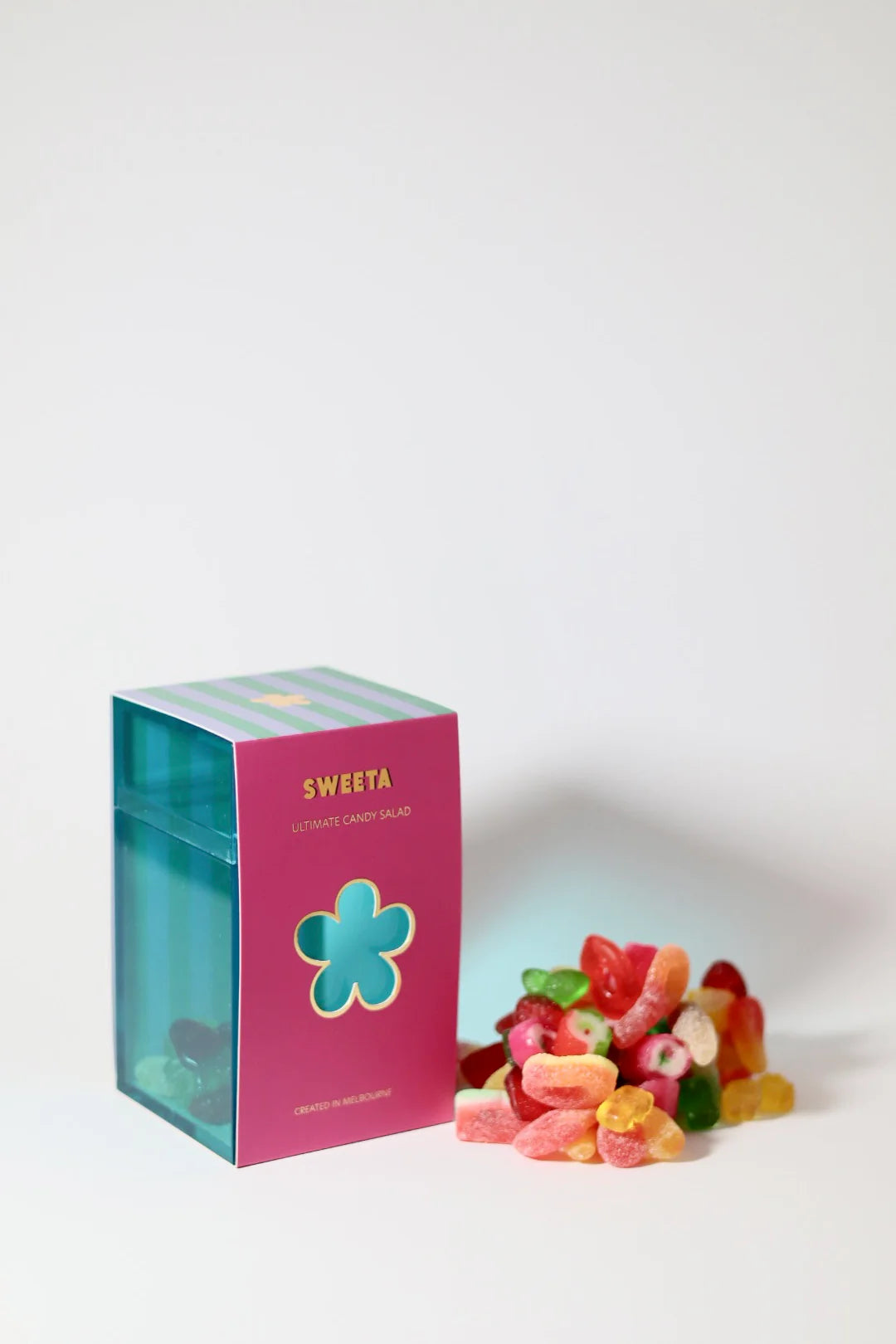 Warning: May cause extreme happiness! Our Ultimate Candy Salad is a super-duper mix of all the sweet, juicy, and yummy treats you could dream of. It's designed to bring smiles and make every moment a little brighter. Dig in and feel the joy!
