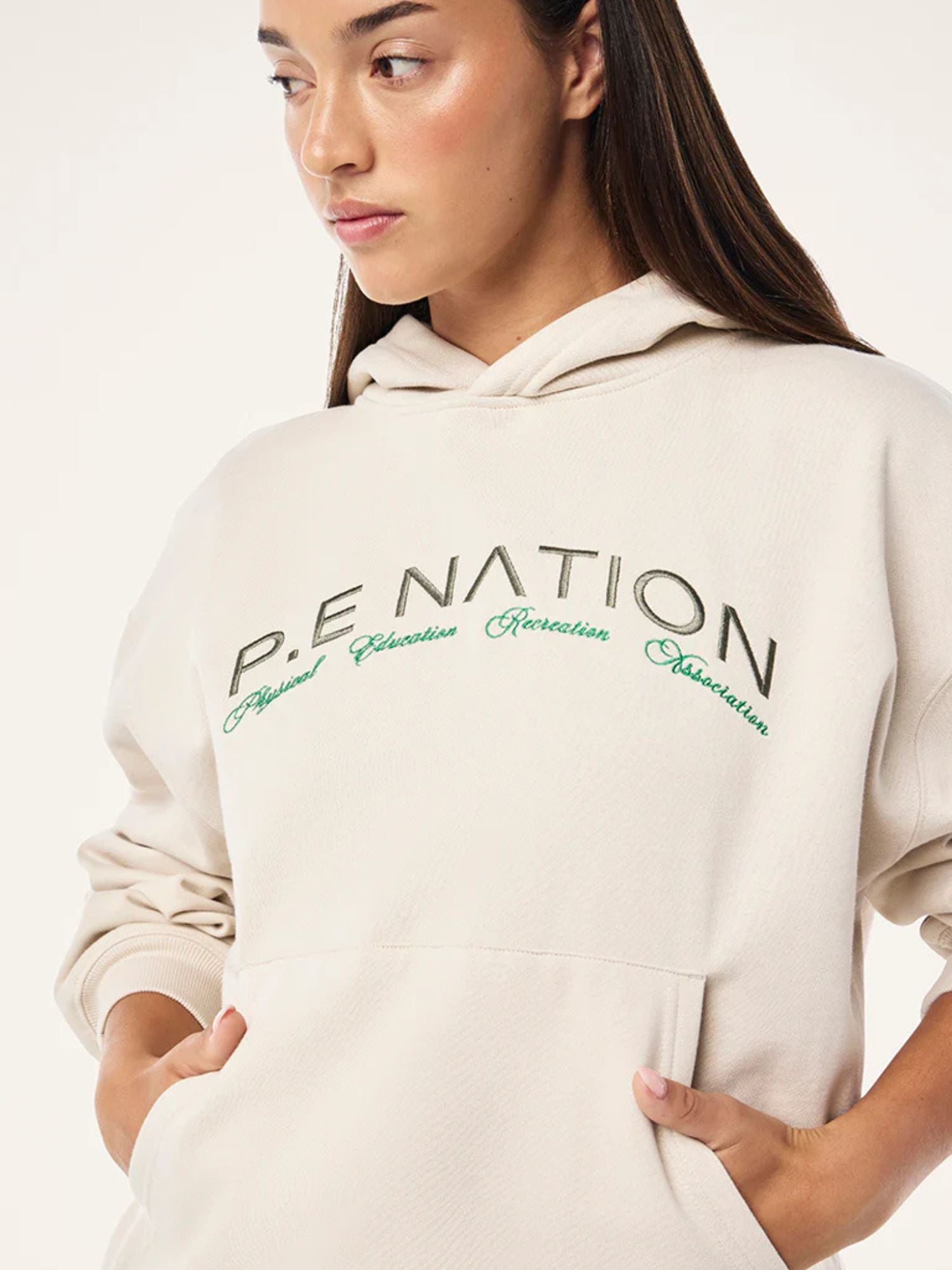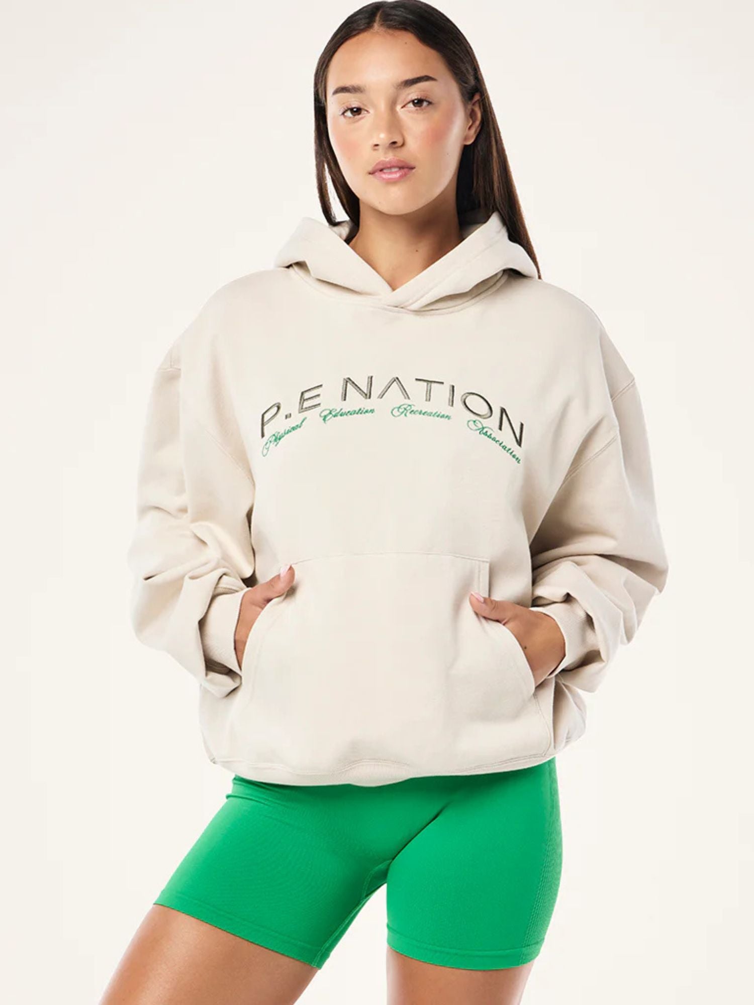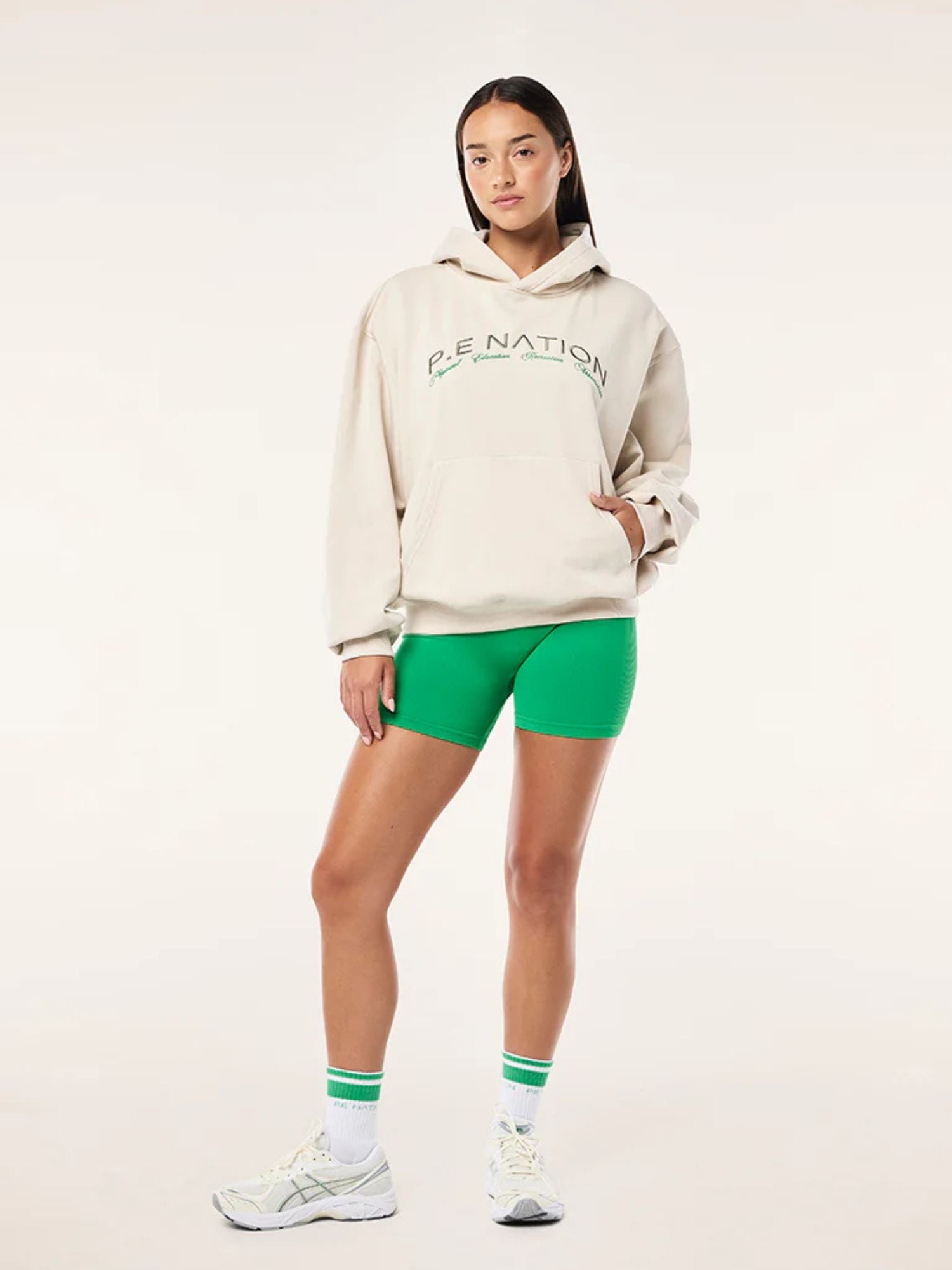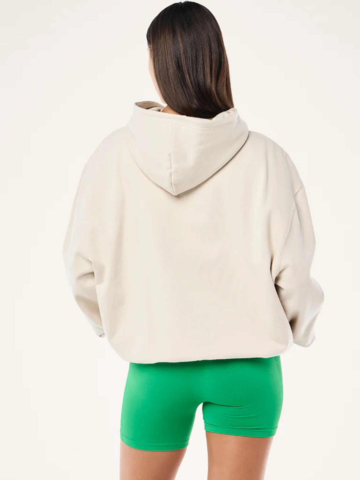 The Volume Hoodie in Cloud is made from our new soft cotton blend fleece. This oversized hoodie features an embroidered centre front graphic logo and a kangaroo pocket, perfect for carrying your smaller essentials. Style this hoodie with active leggings or bike shorts when lounging.